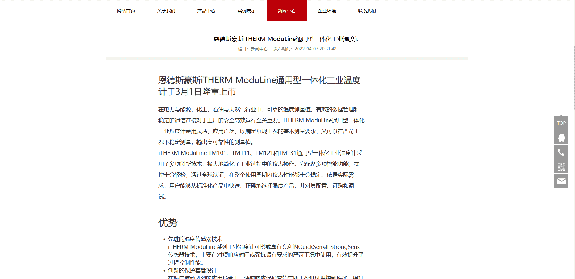 Endress+Hauser(恩德斯·豪斯,简称E+H公司)是一家专业生产及销售工业自动化仪表的跨国集团公司,其产品覆盖了物位(液位)、压力、流量、分析、温度、系统及罐区、记录仪及通讯等工业测量仪表,是世界范围内自动化领域的领导者之一。E+H公司创建于1953年,总部位于瑞士,在世界各地有40多个分支机构,有超过5,800名员工在进行研究、开发、生产、销售和维护工作。在德国、瑞士、法国、美国、日本等世界工业国成立了规模庞大的生产中心,其严格的品质管理和完整的质保体系均已达到ISO9001国际标准。联系市场是开发高质量、高可靠性仪表的重要因素之一,40多年来,E+H公司通过紧密联系市场,不断开发适销对路产品,受益匪浅,并已成为全方位的供应商。
